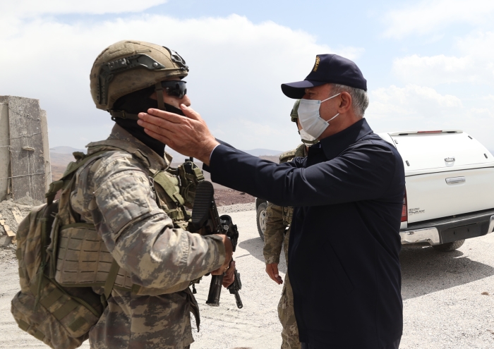 Tedbirleri yerinde inceleyen, faaliyetlere ilişkin bilgi alan Akar'a sahadaki durumu sorduğu Mehmetçik, "Biz buradayken ne terörist ne yasa dışı göçmen yurdumuza girebilir." yanıtını verdi.