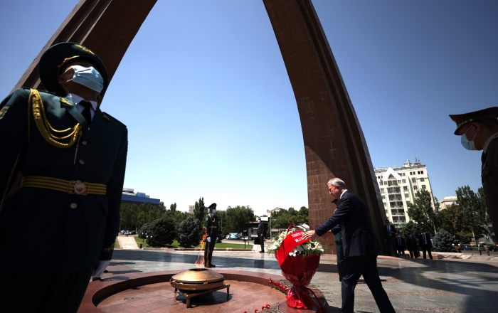 Kırgızistan Savunma Bakanlığı ziyaretinin ardından Akar, Zafer Meydanı'na geçti. Saygı duruşunun ardından Akar, İkinci Dünya Savaşı'nda hayatını kaybeden Kırgızları anmak için yapılan Sönmez Ateş Anıtı'na çelenk koydu.