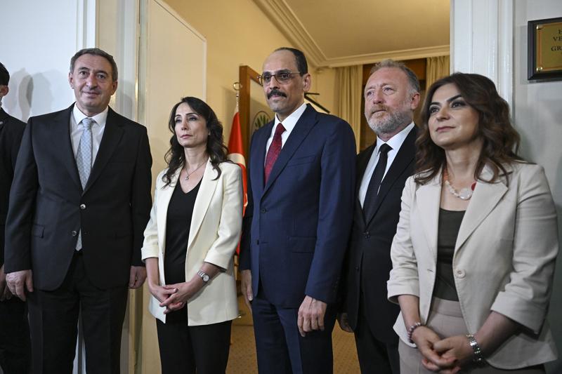 Kalın son olarak DEM Parti TBMM Grubu'nu ziyaret etti. Kalın, Meclis'te, DEM Parti Eş Genel başkanları Tülay Hatimoğulları, Tuncer Bakırhan ve DEM Parti Grup Başkanvekilleri Gülistan Kılıç Koçyiğit ve Sezai Temelli ile görüştü.