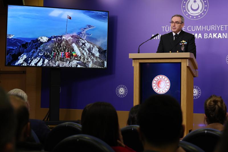 MSB Basın ve Halkla İlişkiler Müşaviri ve Bakanlık Sözcüsü Tuğamiral Zeki Aktürk, bakanlıkta düzenlenen haftalık basın bilgilendirme toplantısında konuştu.