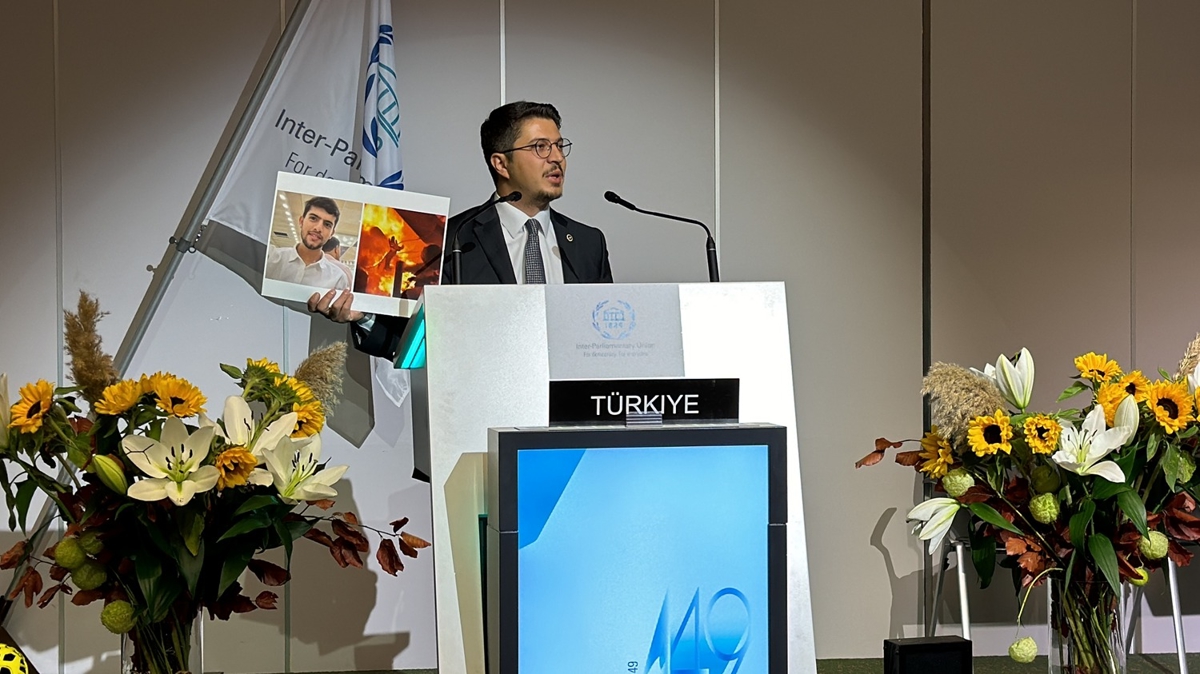 "Bugün gözlerimizin önünde yaşanan trajediyi görmezden gelerek, gelecek nesiller için daha barışçıl ve sürdürülebilir bir dünya inşa etmeyi, gerçekten umabilir miyiz? Şu an karşımda dünyanın dört bir yanından gelen yüzlerce genç milletvekili meslektaşım var. Özellikle onlara seslenmek istiyorum. Daha 2 gün önce biz burada toplantıdayken Aksa Şehitleri Hastanesi'nin bahçesine sığınmış, çadırlarda kalan sivillere yapılan hava saldırısında 19 yaşındaki Şaban Ahmed yanarak can verdi. O da gençti, üstelik yazılım mühendisiydi. O da bilim ve teknolojiyi kullanarak barışçıl bir gelecek inşa etmeyi isterdi. Ama gözlerimizin önünde, canlı yayında yanarak can verdi."