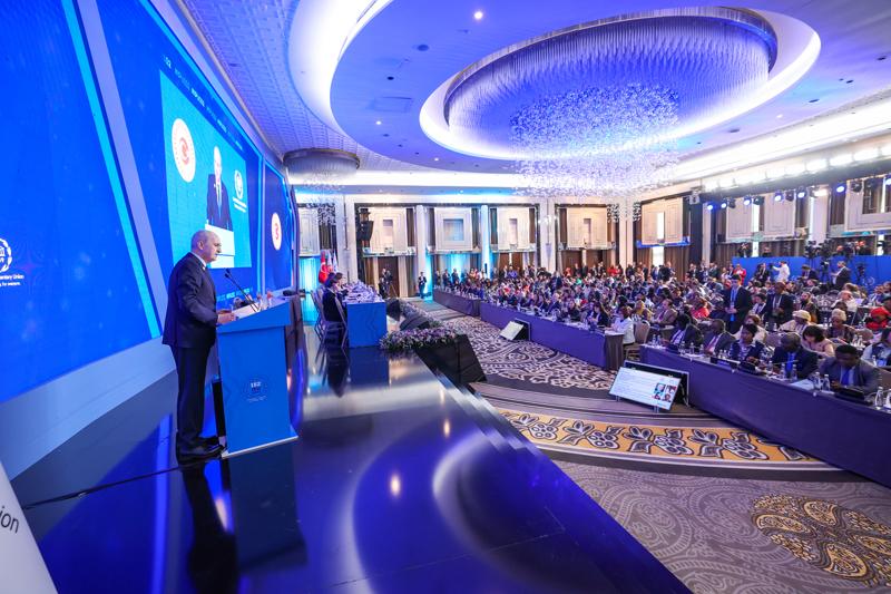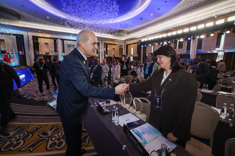 "Kadın Parlamenterler Forumu'nun sıradan bir toplantı formatı olmadığını açıkça ifade etmek isterim. Burası insanlığın önündeki temel meselelerin daha derinlikli olarak, daha hassas ve kapsayıcı bir şekilde tartışıldığı bir forumdur. Burası siyasi tartışmaların ufkunu genişleten ve küresel vicdana yön veren müstesna bir platform olarak uluslararası sistemde yerini almaktadır. İstanbul'daki bu buluşma, kadınların karar süreçlerindeki yeri, çatışma sonrasında toplumların yeniden ayağa kaldırılmasındaki katkıları ve hakkaniyete dayalı bir uluslararası sistemin kurulması yönündeki fikirlerinin tartışılması bakımından çok önemlidir. Esasen bu başlıkların her biri günümüz dünyasının ertelenemez sorumluluk alanlarına da işaret etmektedir."