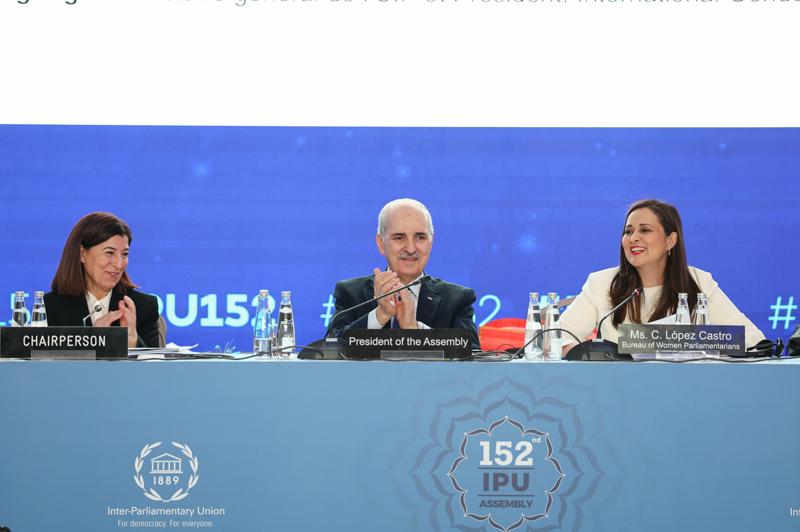 "Sizlerin ortaya koyduğu fikirler iyi niyet beyanı olmanın çok ötesinde, yasama süreçlerini etkilemekte, siyaseti şekillendirmekte ve toplumların geleceğine yön veren alanlarda somut karşılıklar bulmaktadır. Artık açıkça biliyoruz ki, kadınların karar alma mekanizmalarına etkili bir şekilde katılamadığı bir yerde ne hakkaniyet tam manasıyla tesis edilebilir ne de uzun ömürlü bir huzur iklimi oluşturulabilir. Bu noktada parlamentolara özel bir görev düşmektedir. Meclisler, milletlerin iradesinin tecessüm ettiği, toplumsal vicdanın makes bulduğu ve geleceğe dair istikametin belirlendiği kurumsal yapılardır. Yasama, denetim, bütçe ve temsil alanlarında kadınların güçlü şekilde yer alması, daha kapsayıcı, dirençli ve dengeli toplumların inşası bakımından da temel bir gerekliliktir."
