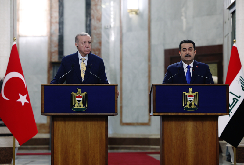 Görüşmelerin ardından, Irak Başbakanı Sudani ile Bağdat'taki Hükümet Sarayı'nda düzenlenen ortak basın toplantısında konuşan Erdoğan, aziz kardeşinin davetine icabetle uzun bir aradan sonra medeniyetlerin kadim şehirlerinden Bağdat'ta bulunmanın bahtiyarlığını yaşadığını söyledi.