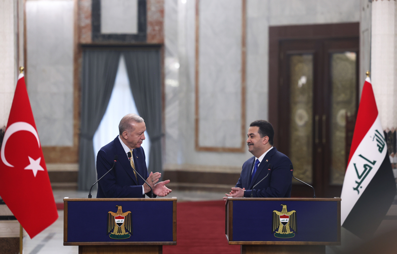 Cumhurbaşkanı Erdoğan, Irak'ın; ortak tarihi, beşeri ve kültürel bağlara sahip olunan, stratejik değer atfettikleri bir komşuları olduğunu vurgulayarak, "Irak'la ilişkilerimizi karşılıklı saygı ve iyi komşuluk ilkesi temelinde ortak çıkarlarımızı gözeterek ilerletme yönünde güçlü siyasi iradeye sahibiz. Bugünkü ziyaretimizde bunu bir kez daha teyit etmiş olduk. Ziyaretimin ve az önce imzalanan anlaşmaların, Türkiye-Irak münasebetlerinde yeni bir dönüm noktasını teşkil edeceğine inanıyorum. Sayın Başbakanla birlikte altına imza attığımız ortak işbirliği için stratejik çerçeve anlaşması, sağlam bir yol haritasını teşkil ediyor." diye konuştu.