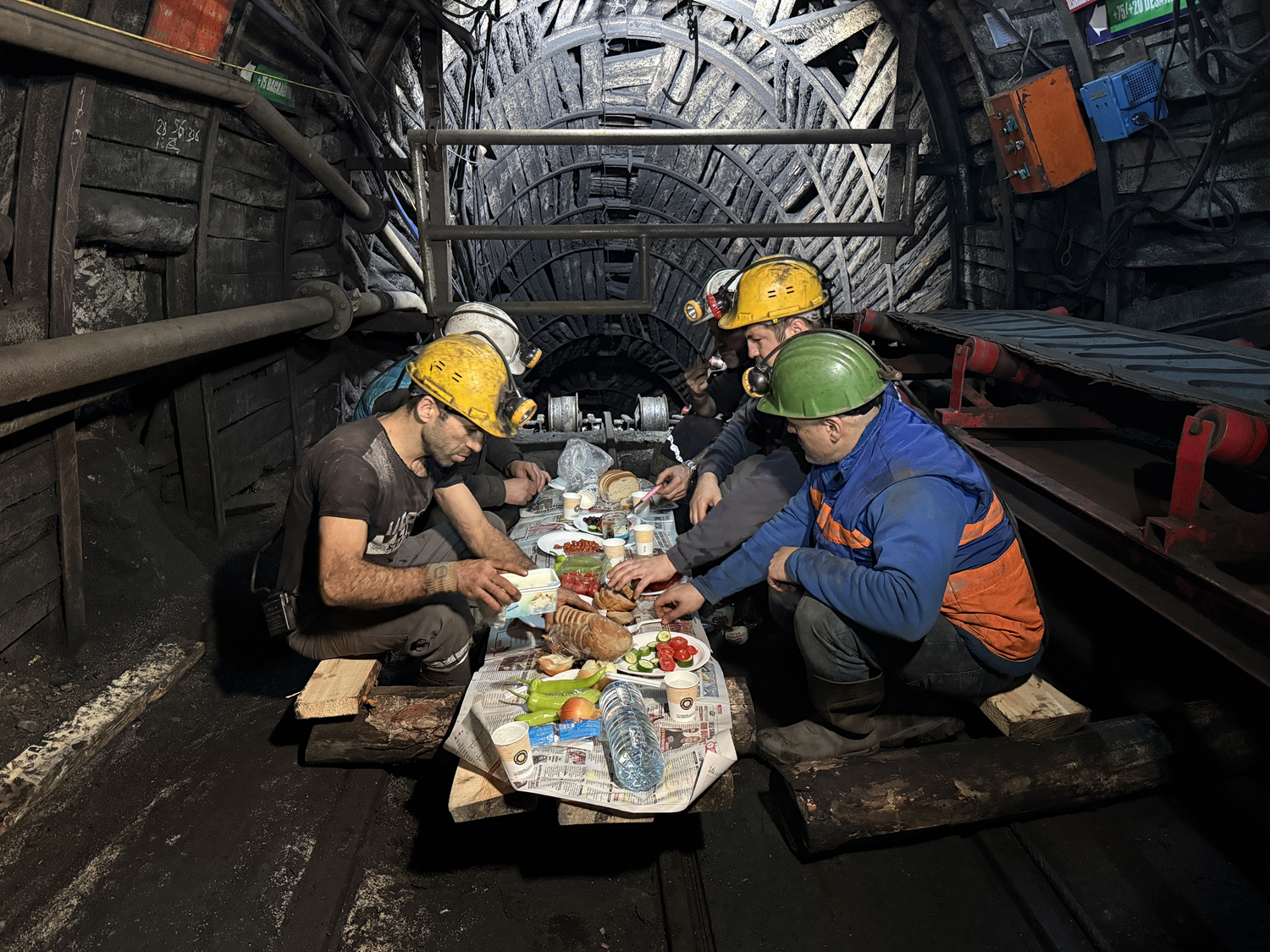 Zonguldak'ta yer altındaki zorlu mesailerini sürdüren maden işçileri, ramazan ayının ilk sahurunu kömür üretiminde kullanılan ağaç direklerden kurdukları sofrada yaptı.