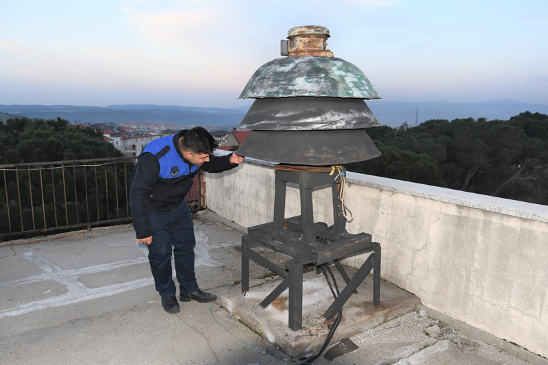 Belediye binasının çatısında bulunan ve üç farklı ses çıkaran siren, bir zabıta görevlisi tarafından sahur ve iftar vakitlerinde ezanla birlikte çalıştırılıyor.