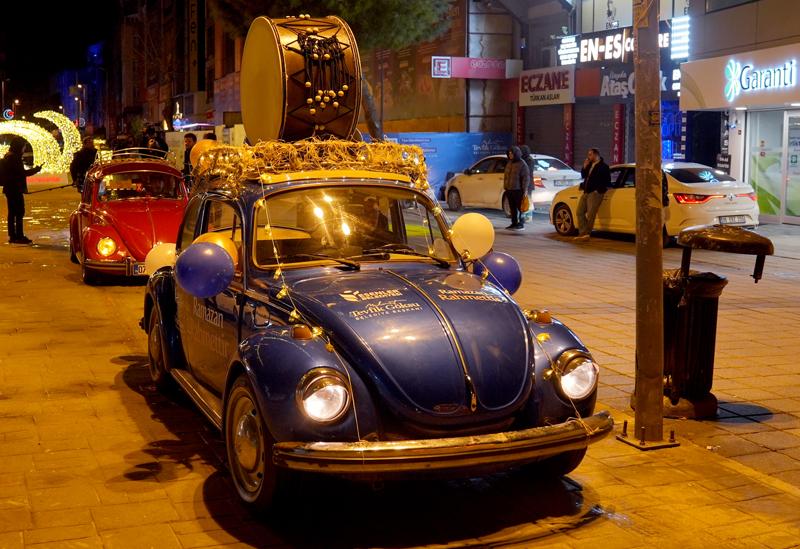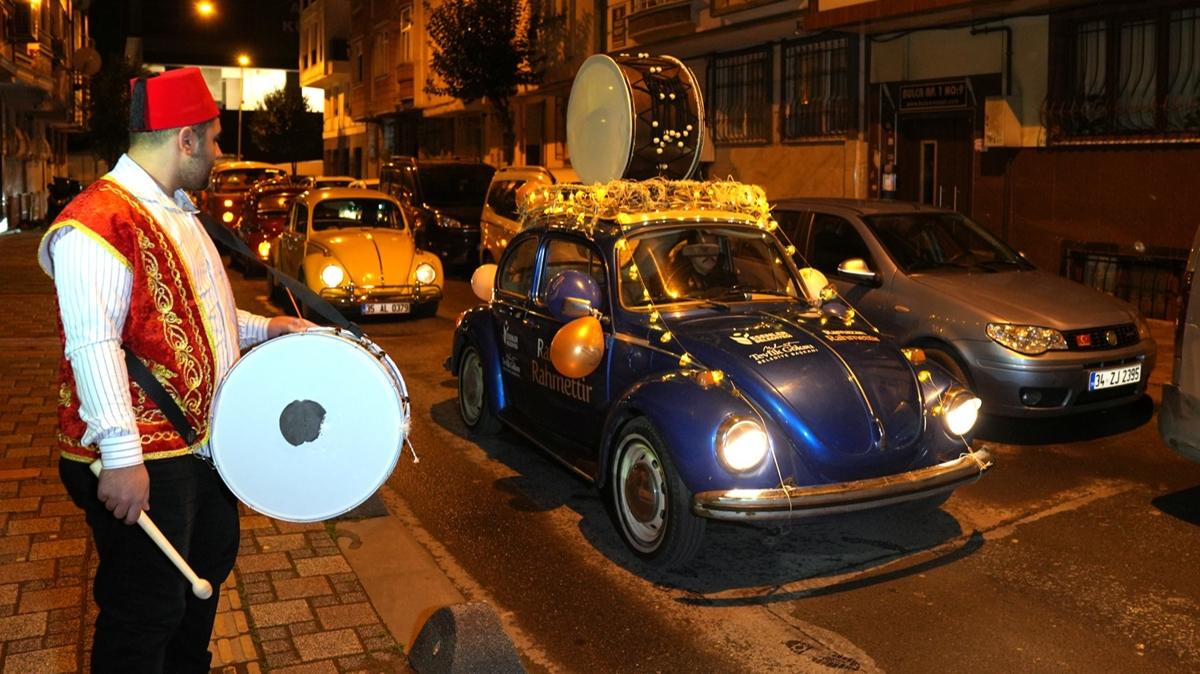 Süslenen otomobiller ilçe sokaklarını davul sesiyle dolaşırken, sahura kalkan vatandaşlar ekibi selamladı.