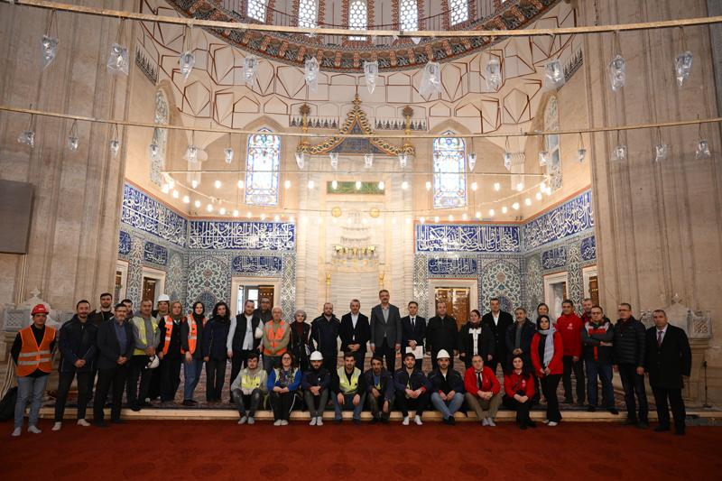 Edirne'de 1752'de yaşanan depremde caminin ciddi hasar aldığını hatırlatan Aksu, sonraki dönemlerde camide çeşitli onarımlar yapıldığını ancak mevcut restorasyonun bilim kurullarının rehberliğinde bütüncül bir anlayışla yürütüldüğünü ifade etti.