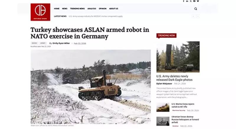 Türkiye'nin savunma sanayii şirketi ASELSAN tarafından geliştirilen silahlı insansız kara aracı Aslan, NATO'nun Almanya'da düzenlenen bu yılki en büyük tatbikatı Steadfast Dart 2026 kapsamında sahaya çıktı. Türk Silahlı Kuvvetleri'nin Aslan'ı aktif olarak kullanması uluslararası basında da geniş yankı buldu.