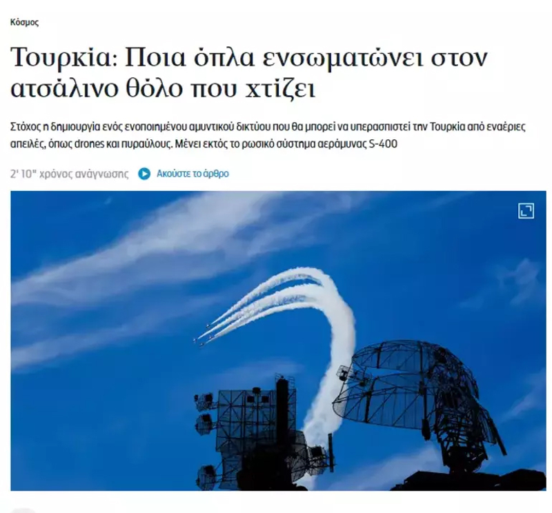 Türkiye'ye havadan gelecek tehditlerin bertaraf edilmesi amacıyla başlatılan "Çelik Kubbe" Projesi dünyada gündemden düşmüyor. Atina merkezli Kathimerini gazetesinin internet sitesinde yer alan haberde, "Çelik Kubbe, Aselsan, Roketsan ve TÜBİTAK SAGE işbirliğiyle geliştirildi. Çok katmanlı bu hava savunma şemsiyesi, kapsamlı hava sahası koruması için mevcutta bulunan ve gelecekte üretilecek radarları, iletişim ağlarını ve hava savunma silahlarını bir sistem halinde koordine edebilecek" ifadeleri kullanıldı.