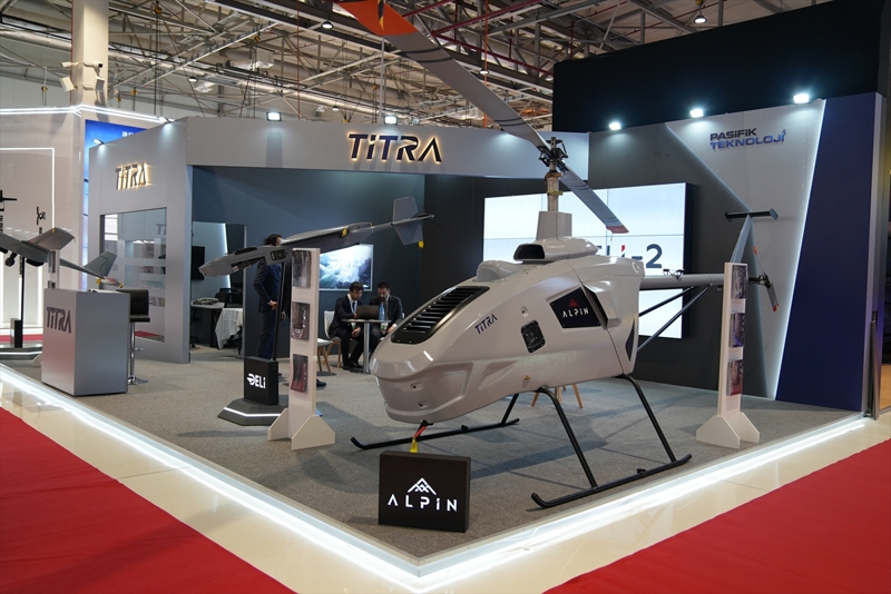 Titra Teknoloji, ADEX 2024 Fuarı'nda kamikaze İHA DELİ, keşif-gözetleme görevleri için geliştirilen PARS İHA ve insansız helikopter ALPİN'i tanıttı.