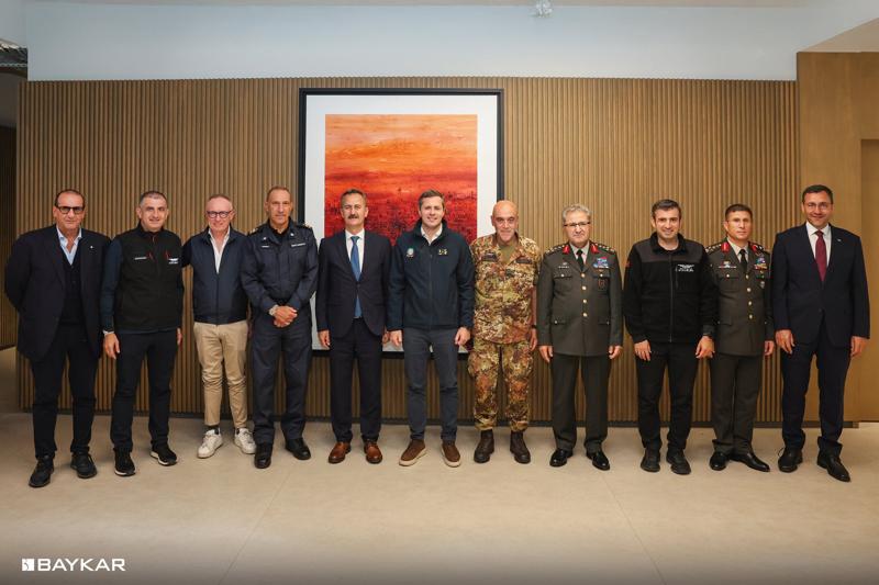 İtalyan heyetine ziyaret sırasında Baykar Yönetim Kurulu Başkanı Selçuk Bayraktar ve Baykar Genel Müdürü Haluk Bayraktar'ın yanı sıra Cumhurbaşkanlığı Savunma Sanayii Başkanı Haluk Görgün, Kara Kuvvetleri Komutanı Orgeneral Metin Tokel, 1. Ordu Komutanı Orgeneral Bahtiyar Ersay ve Roketsan Genel Müdürü Murat İkinci eşlik etti.