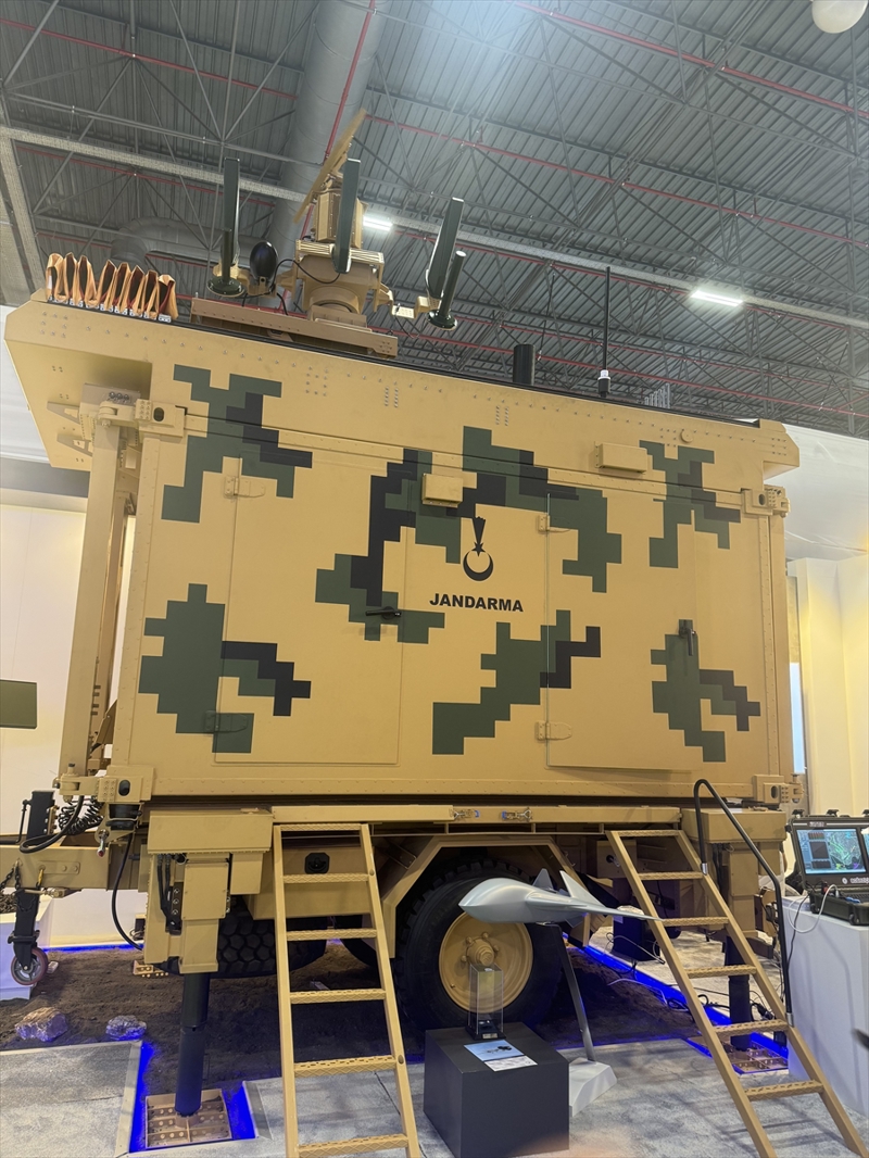 "Bu sistem daha çok sınır hatlarında ve daha geniş alanlarda her türlü dronu engellemek için tasarlandı. Bünyesinde radar ve elektrooptik sistemler barındırıyor. Eğer talep edilirse hardkill çözümleri yani füze ve silah sistemleri takılabilir. Günümüz savaşları artık mobil, hareketli savaşlar haline geldi. Dolayısıyla bu da o özellikleri barındırması için bir treyler (römork veya dorse) üzerinde düşünüldü. Bir zırhlı araç bu sistemi rahatlıkla çekebilir. Envanterdeki herhangi bir kamyonun üzerinde taşımak isterseniz o da mümkün, kendi ayakları üzerinde otomatik olarak kalkabiliyor, altından treyler çıkıyor, kamyon giriyor. Üzerindeki radar, elektrooptik sitemlerle tespitler yapabiliyorsunuz. Ayrıca 400 megahertzden 6 gigahertze kadar radyo frekanslarının tespitleri mümkün. İnsansız hava araçlarını çevresel şartlara bağlı olarak 25-30 kilometrelere kadar uzanan bir menzilde tespit edebilirsiniz. Tespit ettiğiniz bu dronları karıştırma imkanı çok güçlü bu sistemde. 20 megahertzden başlayarak 18 gigahertze kadar giden bir karıştırma spektrumu var. 20 megahertzler dediğimiz, aslında el yapımı patlayıcıların tetiklenme mekanizmalarının çalıştığı frekanslar. Onlara da mani olabilir."