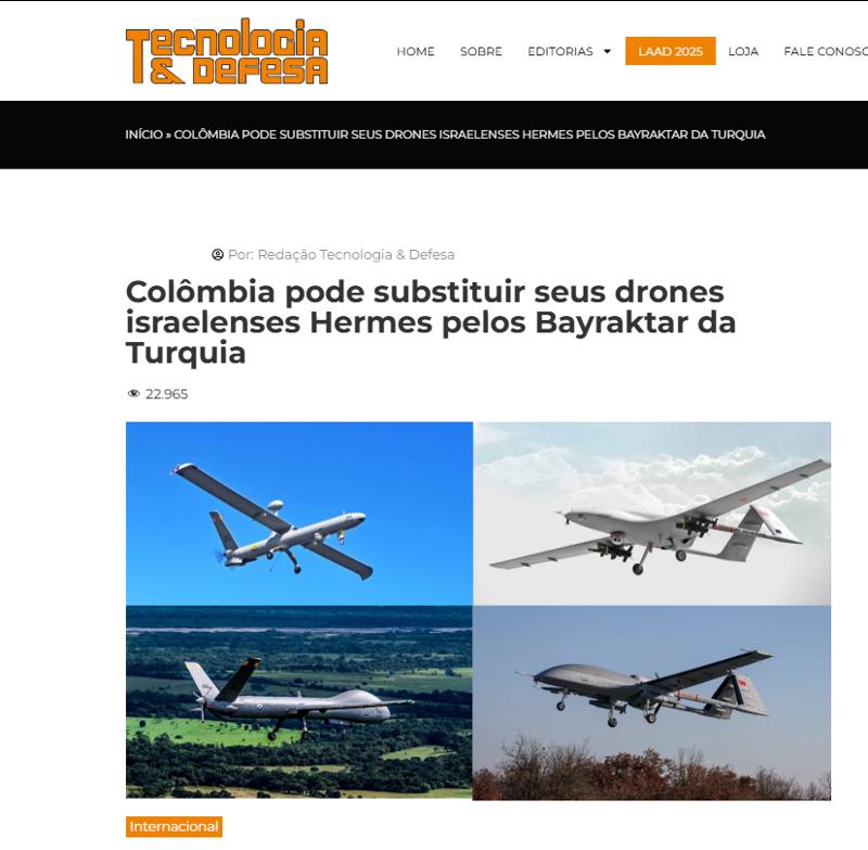 Ekvador gazetesi El Comercio'ya göre, Kolombiya Hava Kuvvetleri, 2012 yılında İsrail şirketi Elbit Systems'ten satın aldığı 6 adet Hermes 450 ve 2 adet Hermes 900 uzaktan kumandalı insansız hava aracı sistemini (RPAS), yerli ve milli savunma sanayi şirketimiz BAYKAR'ın Bayraktar TB2 ve Bayraktar TB3 sistemleriyle değiştirmeyi düşünüyor.