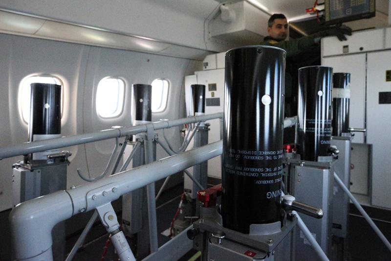 Uçuş sırasında farklı görev özelliklerine sahip denizaltıları tespit etmeye yarayan sonar kabiliyetli platform "sonoboy" cihazları, uçaktan tatbikat sahasına atıldı.