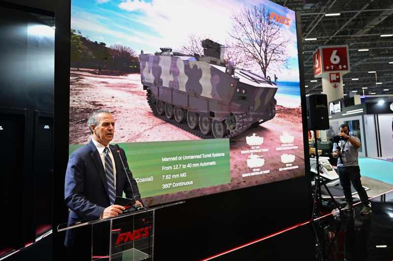 FNSS Üst Yöneticisi Nail Kurt, İstanbul'da düzenlenen SAHA EXPO Savunma, Havacılık ve Uzay Sanayi Fuarı'nda, Endonezya Silahlı Kuvvetleri için üretecekleri yeni zırhlı personel taşıyıcı hakkında bilgi verdi.