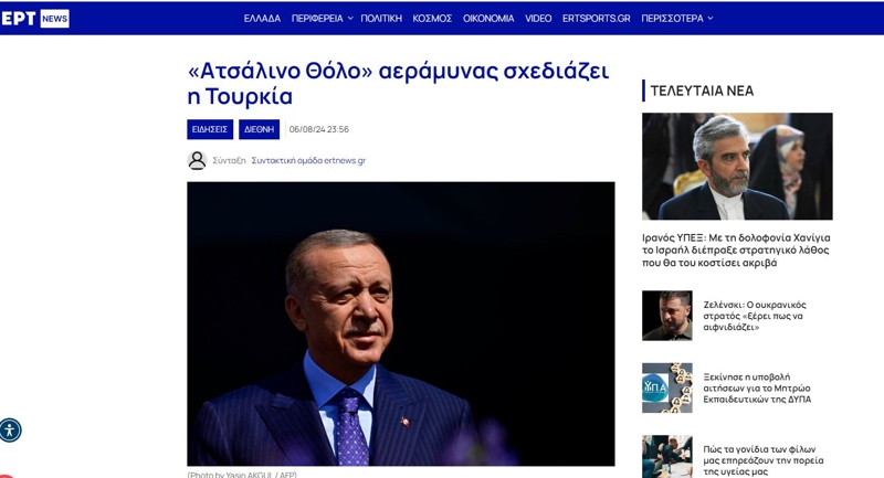 Yunanistan'ın önde gelen gazetelerinden Kathimerini "Entegre hava savunmasının 'Çelik Kubbesi' Cumhurbaşkanı Erdoğan tarafından planlanıyor" başlığını attı.