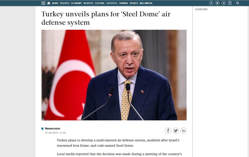 Türkiye'nin katmanlı hava savunma sistemi Çelik Kubbe dünyada büyük bir ilgi gördü. Çelik Kubbe, Yunanistan'ın önde gelen medya kuruluşlarının da ilgisini çekti. Ülkedeki yayın organları Çelik Kubbe'ye geniş yer ayırdı. Yunan basını "Türk semalarında kuş bile uçamayacak" başlığını attı.