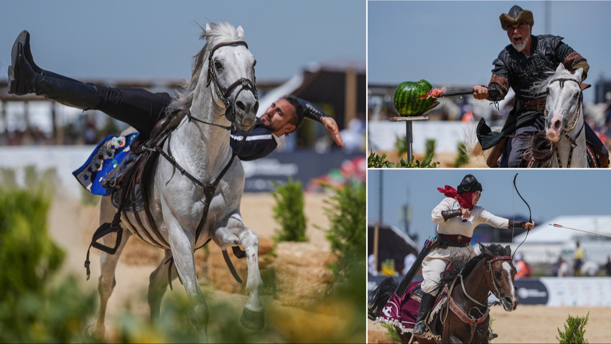 Dünya Etnospor Konfederasyonu tarafından düzenlenen 6. Etnospor Kültür Festivali'nde Balıkesir Karasi Atlı Binicilik ve Savaş Sanatları Kulübü, Türklerin kadim savaş sanatlarını canlandırdı.