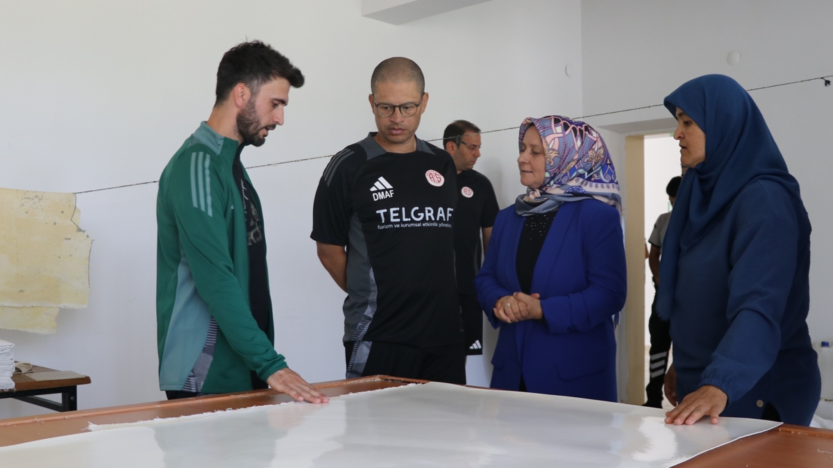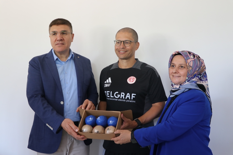 Burdur Mehmet Akif Ersoy Üniversitesi Spor Komplekslerinde kamp yapan Antalyaspor'un teknik direktörü Alex de Souza, "Burdur Top Dikim Kadın Girişimi Üretim ve İşletme Kooperatifi" atölyesini gezdi.