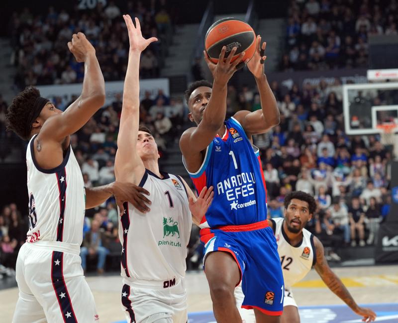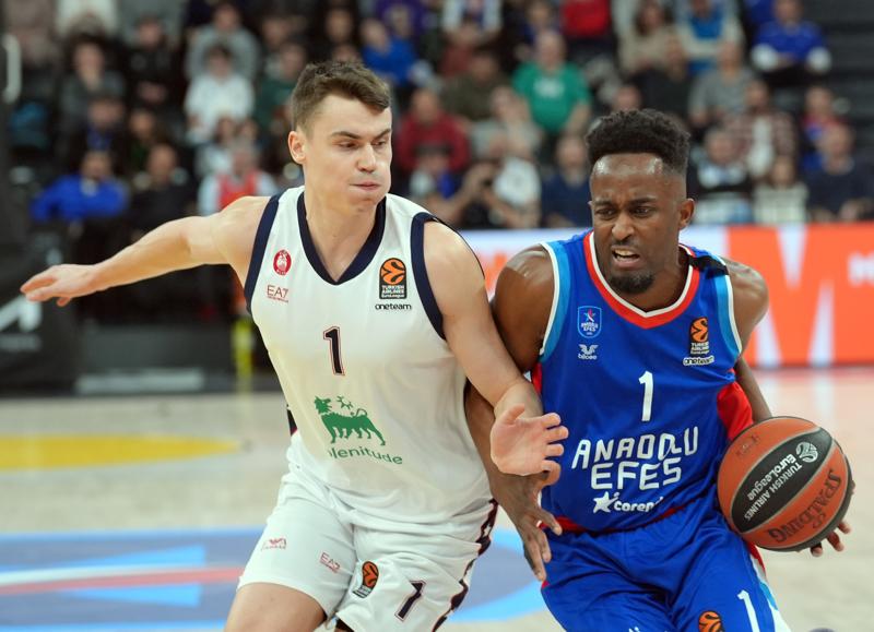 Anadolu Efes: Larkin 11, Bryant 12, Thompson 5, Ercan Osmani 12, Poirier 6, Smits 13, Beaubois 18, Oturu 10, Dozier 8, Nwora 15
