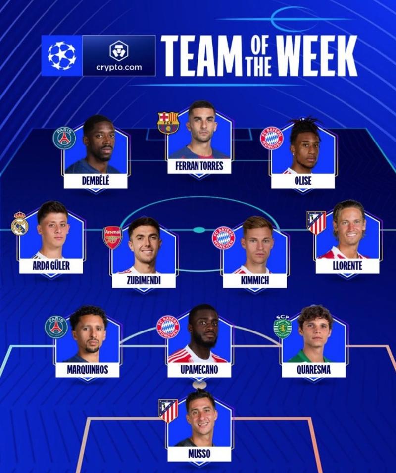 UEFA Şampiyonlar Ligi'nde çeyrek final rövanş maçları sona ererken, haftanın 11'i de belli oldu. 11 kişilik listede, Bayern Münih maçında attığı 2 golle dikkat çeken milli futbolcu Arda Güler de yer aldı.