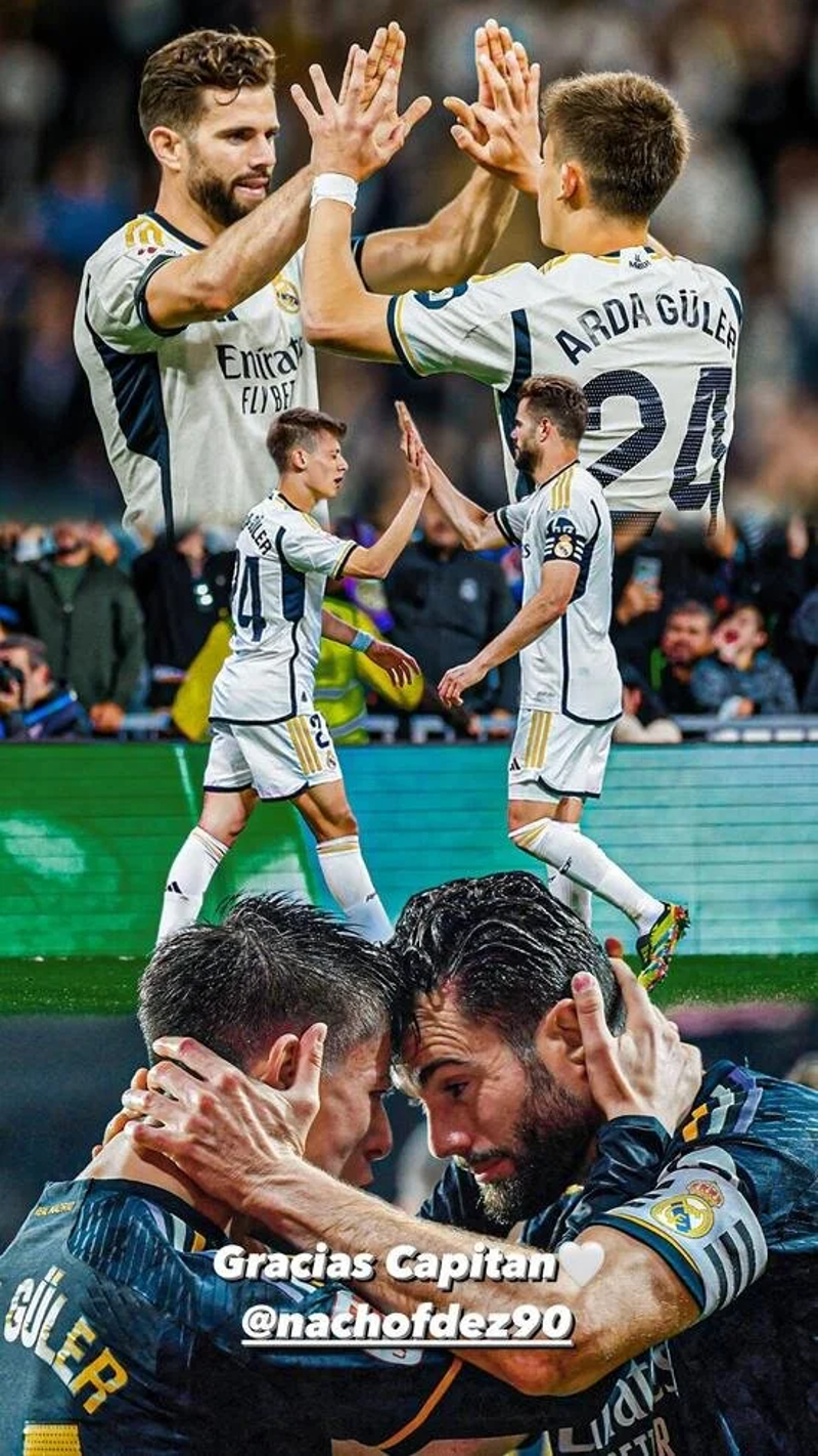 Milli futbolcu Arda Güler, Real Madrid'den ayrıldığını açıklayan takım arkadaşı Nacho Fernandez için sosyal medya hesabından veda paylaşımında bulundu.