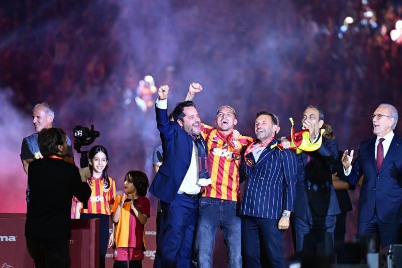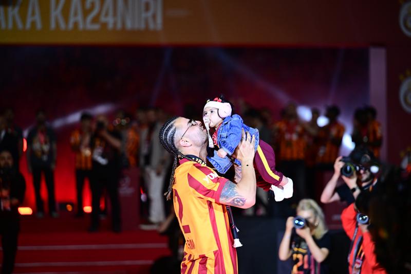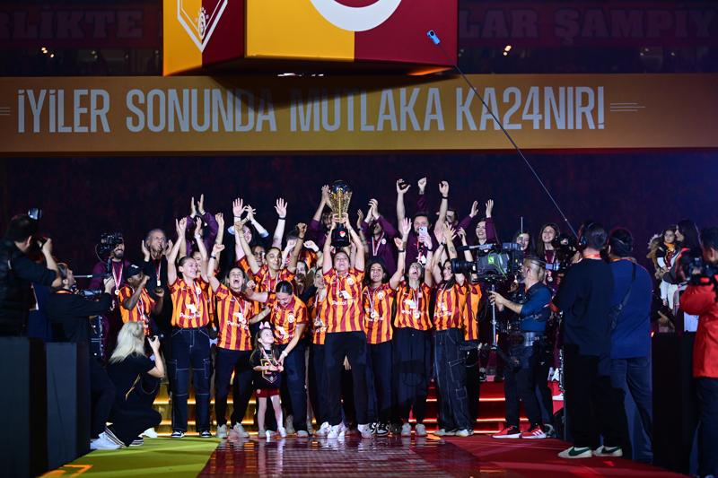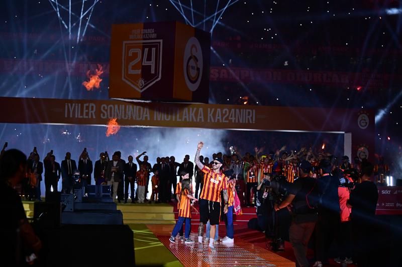 Sarı kırmızılılar, favori şarkılarıyla sahneye çıkıp madalyalarını aldılar.Tüm futbolcuların sahneye çıkmasının ardından Süper Kupa ve Süper Lig şampiyonluk kupası, yıldız oyuncular ellerinde yükseldi.Sarı-kırmızılılarda ayrıca Kadınlar Futbol Ligi'nde şampiyon olan takım da kupasını aldı ve Galatasaray, 3 kupa birden kaldırdı.