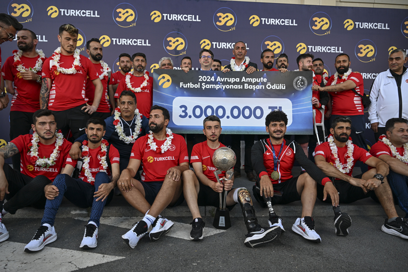 Turkcell Genel Müdür Yardımcısı Ali Uysal ise Ampute Milli Takımı'na 3 milyon liralık bir başarı ödülü verdiklerini belirterek, "Türk sporunun en büyük destekçilerinden biri olarak Yatırım Finansman ve Türkiye Bedensel Engelliler Spor Federasyonu'na (TBESF) destek oluyoruz, ana sponsoruyuz. Bedensel engelli spor branşları, bedensel engelli vatandaşlarımızın hem spor teşviki hem de hayata katılımında çok önemli rol model oynuyor. Aynı zamanda Ampute Milli Takımımız da Türkiye'nin gönlünde çok özel bir yere sahip. Bu sene 3. defa üst üste Avrupa şampiyonu oldular. Bu başarıda emeği geçen başta federasyon başkanımız ve teknik direktör İsmail hocamız olmak üzere bütün oyuncularımızı tebrik ediyor ve kutluyoruz. Bu vesileyle biz de Turkcell olarak kendilerine 3 milyon liralık bir başarı ödülünü takdim etmekten gurur ve mutluluk duyuyoruz" şeklinde konuştu.