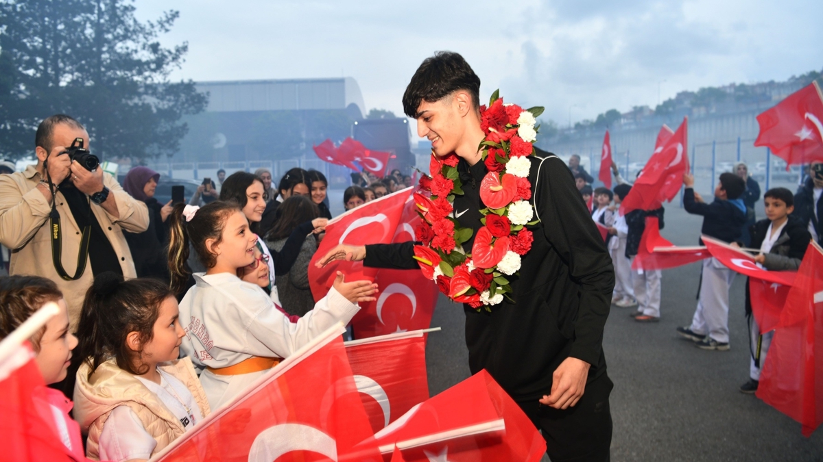 Avrupa şampiyonu tekvandocu Furkan Ubeyde Çamoğlu, coşkuyla karşılandı