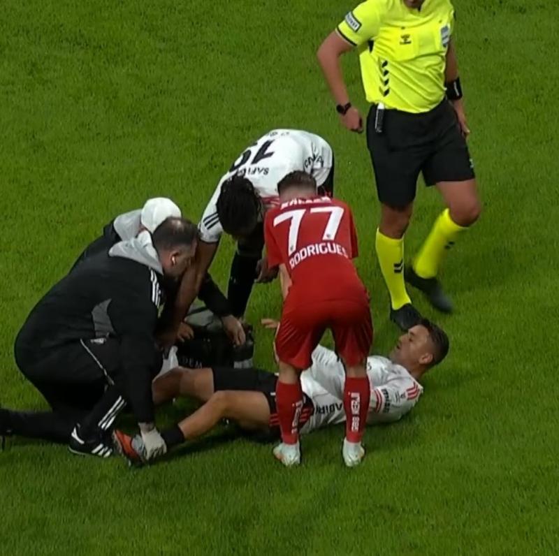 Beşiktaş'ın Portekizli kanat oyuncusu Jota Silva, ilk yarının son anlarında ceza sahası içerisinde rakibiyle girdiği ikili mücadele sonrasında yerde kaldı. Maça devam edemeyen Jota ikinci yarının başında yerini Tammy Abraham'a bıraktı.