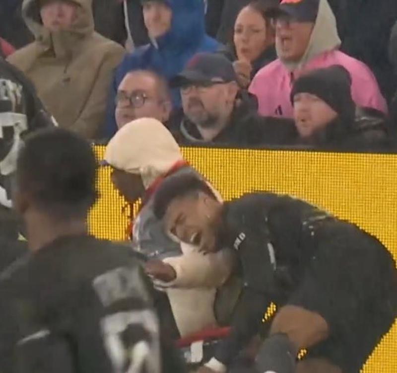 Taç çizgisinin yakınında Szoboszlai'yi geçmek isteyen 20 yaşındaki futbolcu, ikili mücadele sonrası reklam panolarının altındaki mikrofon standına sert bir şekilde çarptı. Tripodun ayakları, Desire Doue'nin karnına ve dizine sert bir şekilde gelirken oyuncu acı içinde yerde kaldı.