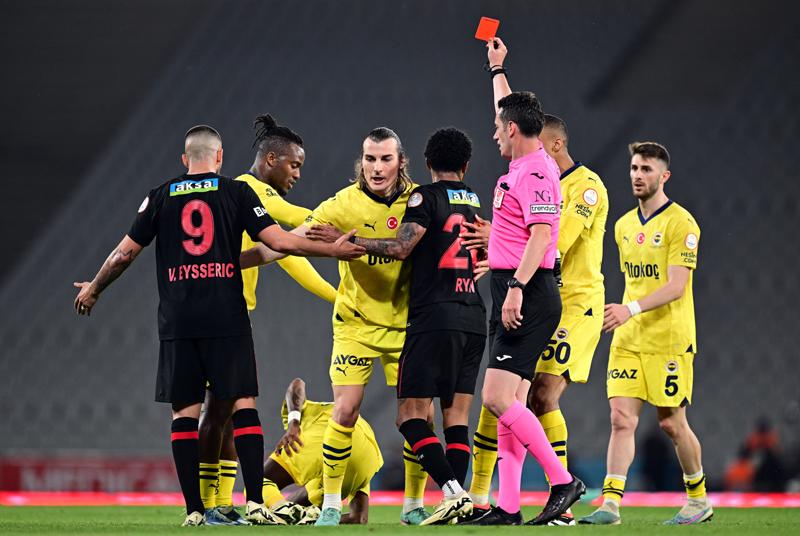 90+7. dakikada Fatih Karagümrük 9 kişi kaldı. Soldan Fenerbahçe ceza sahasına giren Eysseric yerde kalırken, hakem Tugay Kaan Numanoğlu, aldatmaya yönelik hareket sebebiyle oyuncuyu ikinci sarı karttan kırmızı kartla ihraç etti.
