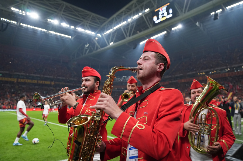 Mücadele öncesinde saha kenarına çıkan "Cumhuriyet Bandosu"nun çaldığı marşlara taraftarlar coşkuyla eşlik etti.