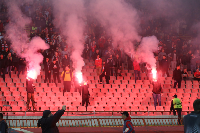 Kızılyıldız taraftarları, stadın büyük bölümünü doldurdu. Maç öncesi koreografi yapan ev sahibi takım taraftarları, hava fişek ve meşalelerle takımlarını destekledi.