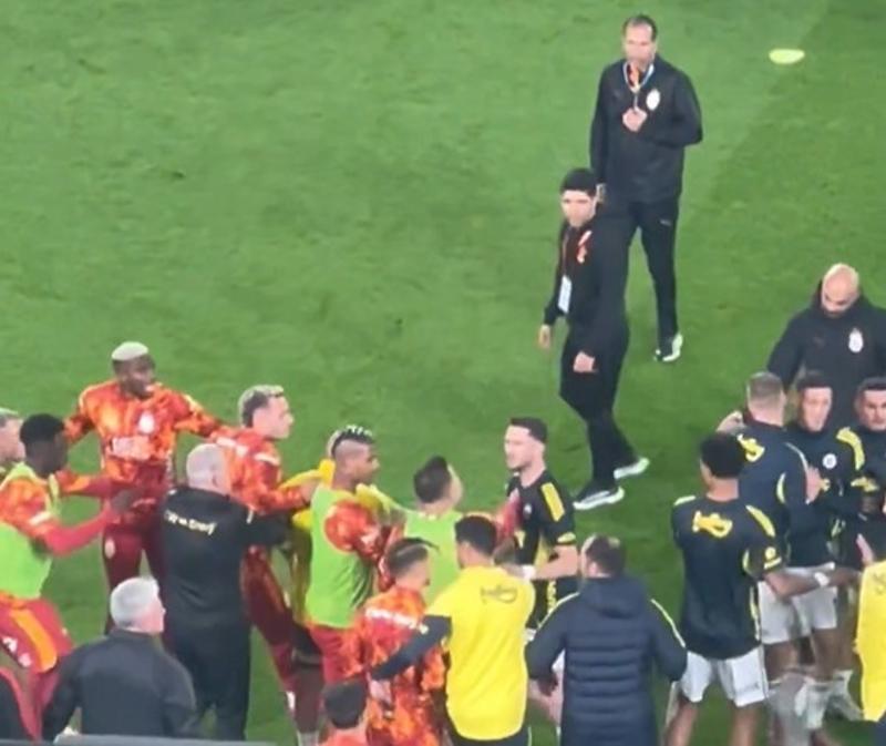Süper Lig'in 14'üncü haftasında Fenerbahçe ile Galatasaray'ı karşı karşıya getirecek derbi mücadelesi öncesi tansiyon yükseldi. Isınmak için sahada bulunan iki takım oyuncuları arasında tartışma çıktı.