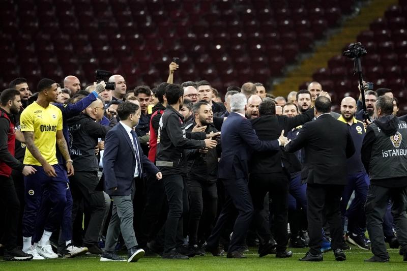 Bazı Galatasaraylı idareciler sahaya girdi. İki taraf arasında gerginlik çıktı. Polis güçlerinin olaya müdahalesi sağlandı. Kısa bir süre sonra Fenerbahçe Başkanı Ali Koç, yöneticiler ve futbolcular içeriye girdi. Gerginlik de sona erdi.