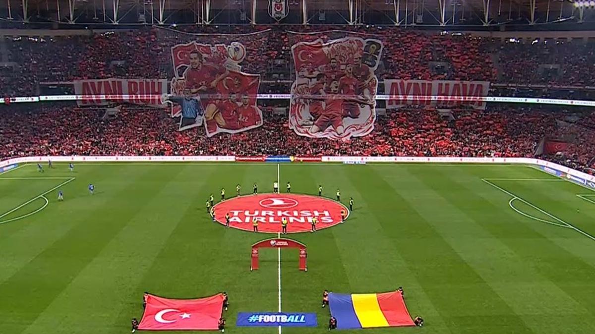 2026 Dünya Kupası Avrupa Elemeleri play-off yarı final karşılaşmasında A Milli Takım'ımız, Romanya ile karşı karşıya geldi. Tüpraş Stadyumu'nda oynanan maç öncesinde taraftarlar, dev bir koreofrafiye imza attı.