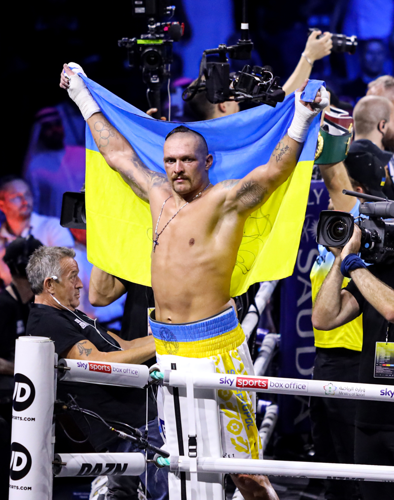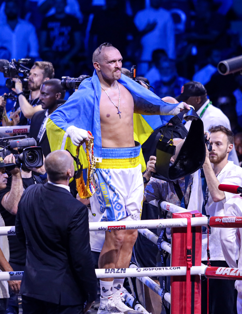 35 yaşındaki Usyk. mücadelenin ardından 'Bu zaferi ülkeme, aileme, ekibime ve bu ülkeyi savunan tüm orduya adıyorum.' ifadesini kullandı.