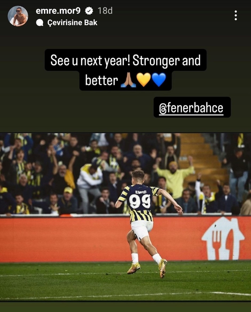 Emre Mor, Fenerbahçe formalı fotoğrafını kullanarak yaptığı paylaşımda, "Seneye görüşmek üzere! Daha güçlü ve daha iyi." ifadelerini kullandı.