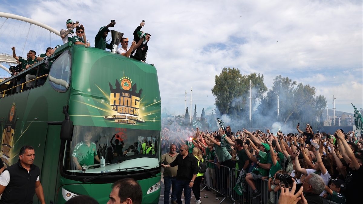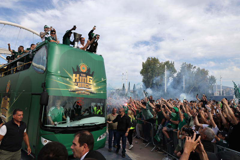 Almanya'nın başkenti Berlin'de gerçekleştirilen Dörtlü Final'de İspanya temsilcisi Real Madrid'i 95-80 mağlup ederek şampiyonluğa ulaşan Türk başantrenör yönetimindeki Yunan ekibi Panathinaikos'u, taraftarları Atina'daki Eleftherios Venizelos Havaalanı'nda ve takımlarının salonu OAKA'da bekledi.