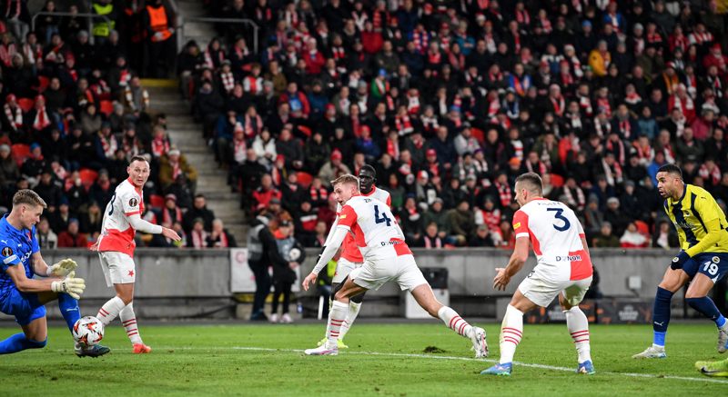 AKTUALNE: "Avrupa laneti devam ediyor. Slavia sonunda yeniden yandı" "Avrupa Ligi ana aşamasının beşinci maçında Slavia'lı futbolcular, evinde Fenerbahçe'ye 1-2 mağlup oldu ve ligde üst üste üçüncü yenilgisini aldı."