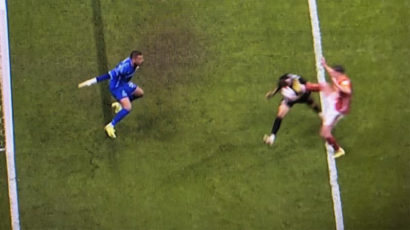 Gençlerbirliği ceza sahası içinde Zuzek ile girdiği ikili mücadelede ayağını tehlikeli bir biçimde kaldıran Roland Sallai rakibine sert bir müdahalede bulundu. VAR'dan gelen uyarı sonrası monitöre yönelen hakem Ozan Ergün Sallai'ye kırmızı kart gösterdi.
