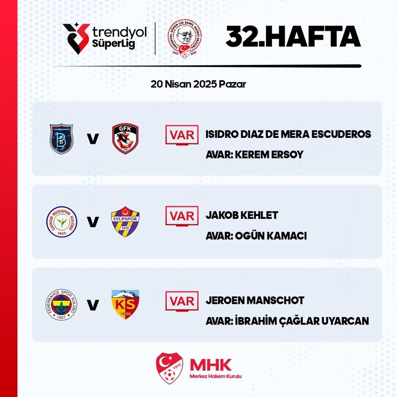 Süper Lig'de günün diğer karşılaşmalarının VAR hakemleri: