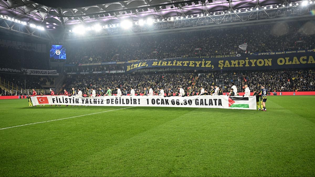 Ziraat Türkiye Kupası C Grubu ilk maçında Fenerbahçe, Beşiktaş'ı konuk etti. Maç öncesi iki takım futbolcuarı, 'Filistin yalnız değildir. 1 Ocak 08.30 Galata' pankartıyla sahaya çıktı.