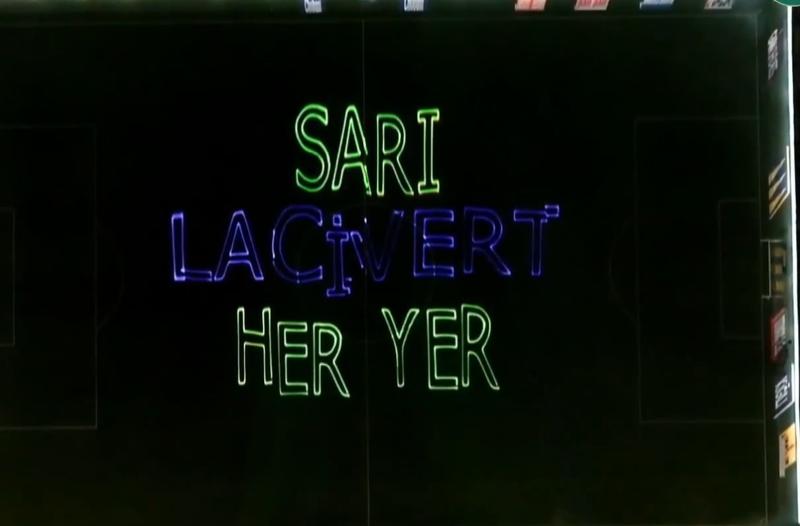 Stadın tüm tribünlerinde sarı lacivert kartonlar açıldı.