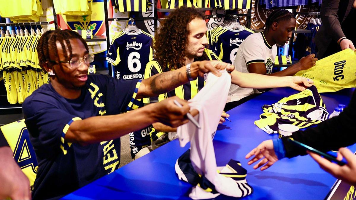 Fenerbahçeli futbolcular Matteo Guendouzi, Dorgeles Nene ve Sidiki Cherif, Chobani Stadı'nda bulunan Fenerium mağazasındaki imza gününde taraftarlarla bir araya geldi.