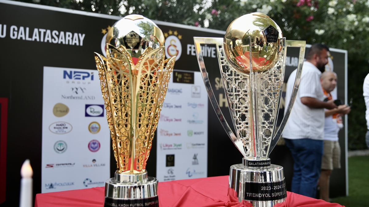 Programda 2023-2024 Trendyol Süper Lig ile Kadın Futbol Süper Ligi şampiyonluk kupaları sergilendi. Geceye katılan davetliler kupalarla hatıra fotoğrafı çektirdi.