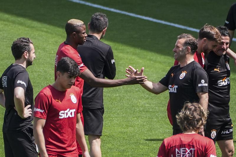 Galatasaray, Trendyol Süper Lig'in 37. haftasında Göztepe ile cumartesi günü deplasmanda oynayacağı maçın hazırlıklarına yaptığı antrenmanla devam etti.